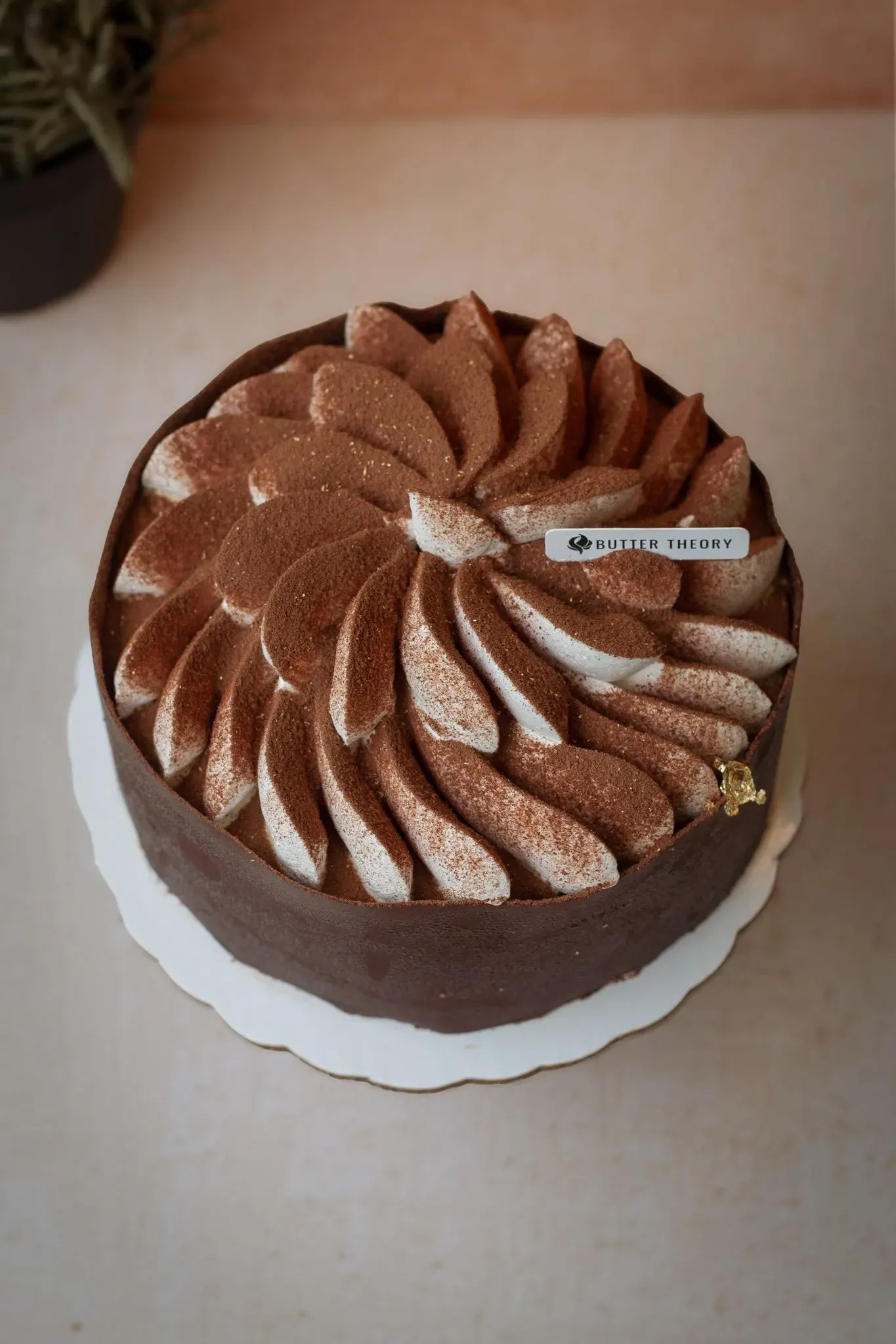 -topping de chantillí, Cocoa amarga y piezas de chocolate.